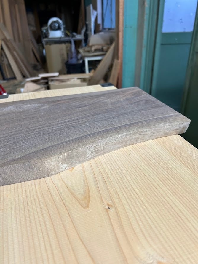ウォールナット材料2枚 約410×220~255×28mm 約230弱×140弱×30mm