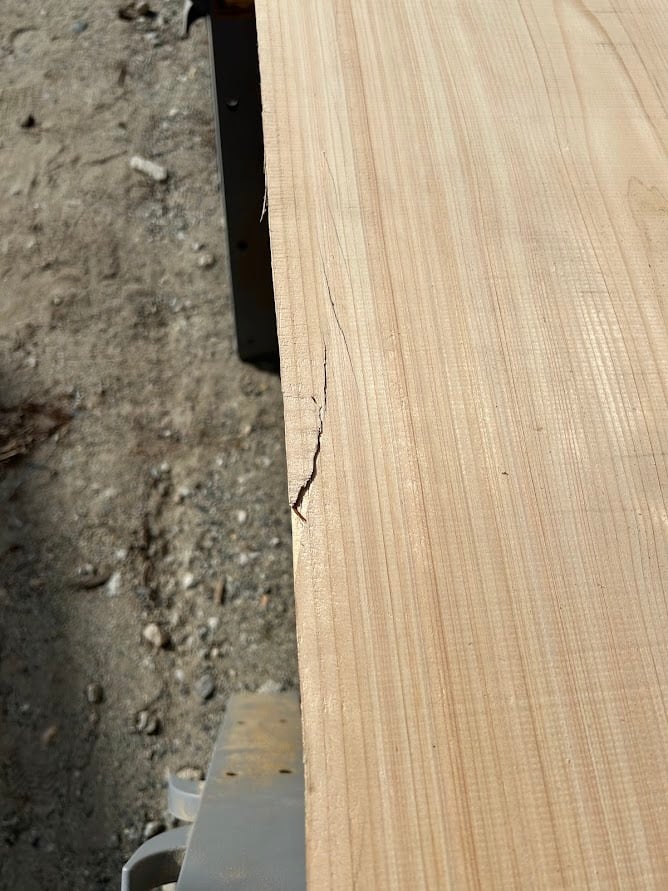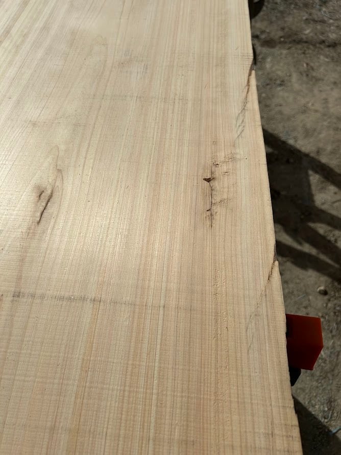 ・節、ヒビ、皮、虫食い、腐り、変色、キズ、逆目があります。