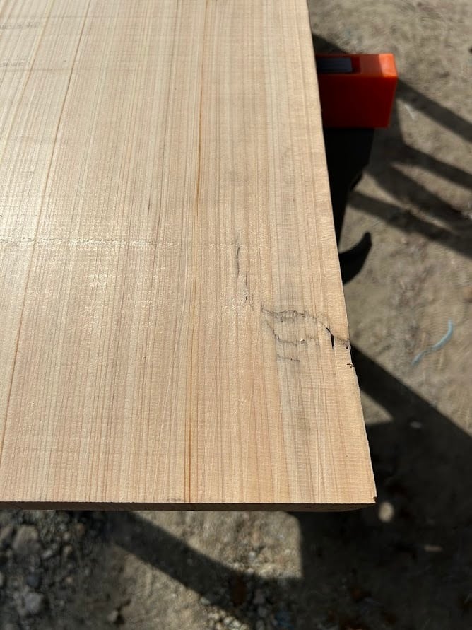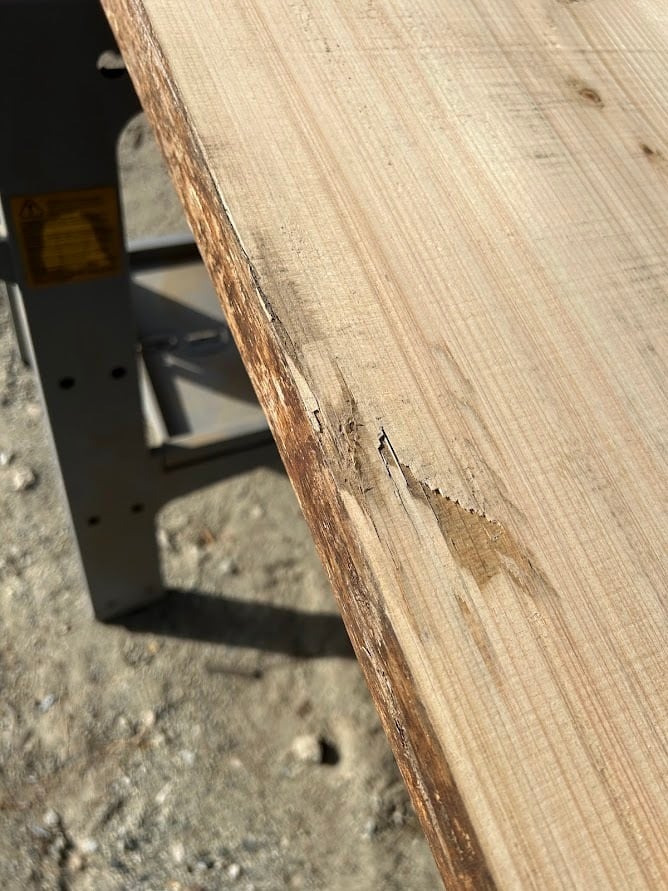 ・節、ヒビ、皮、虫食い、腐り、変色、キズ、逆目があります。
